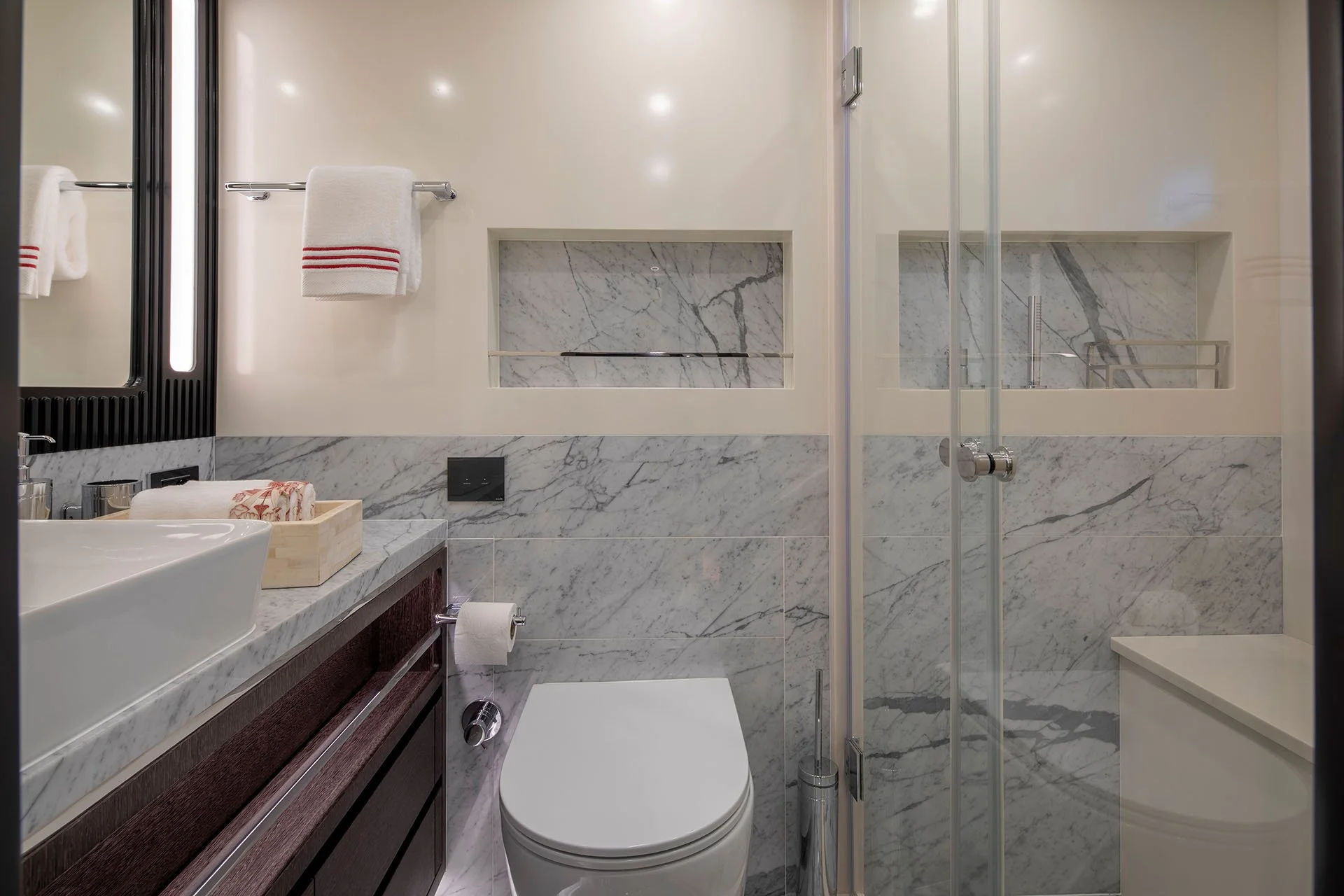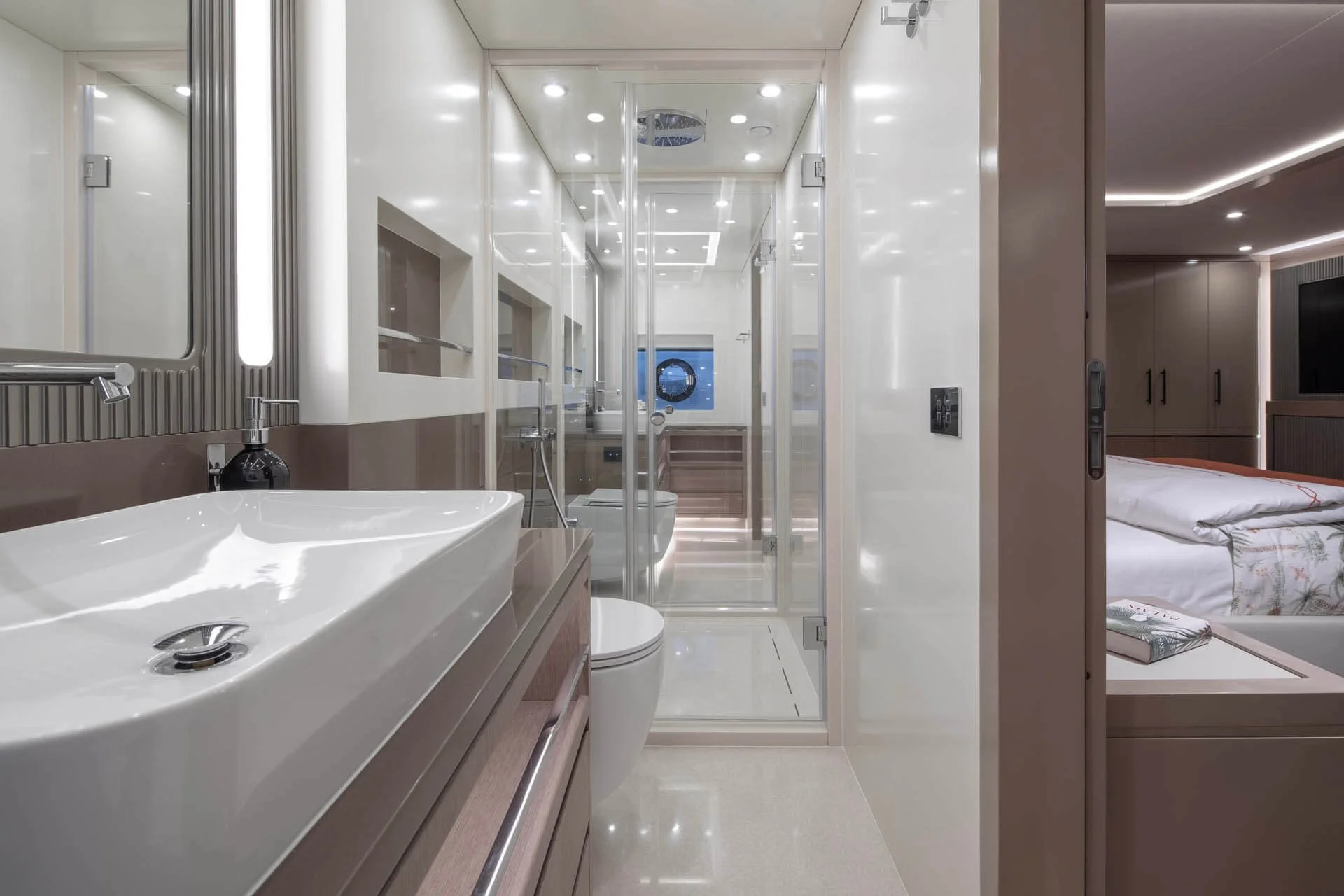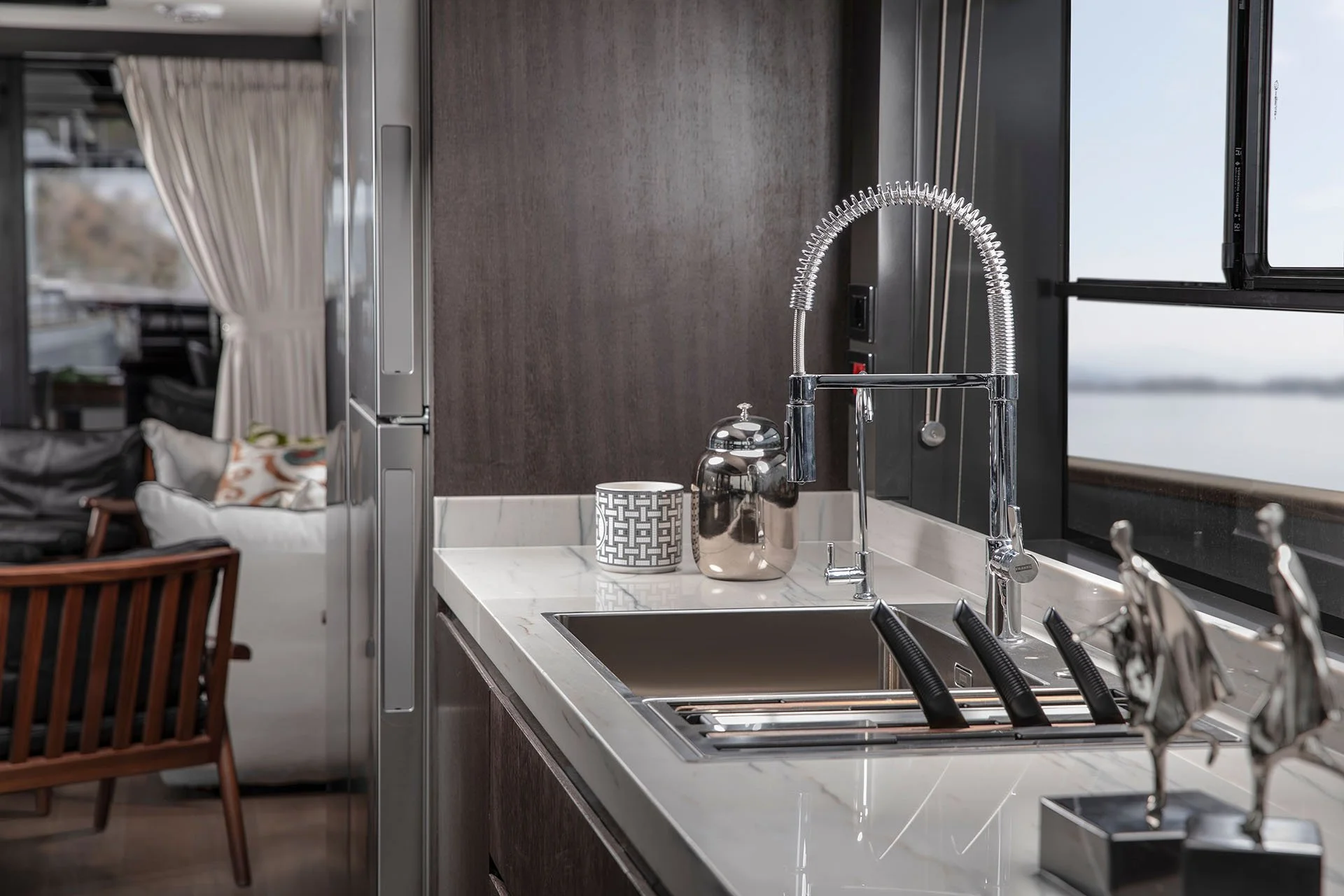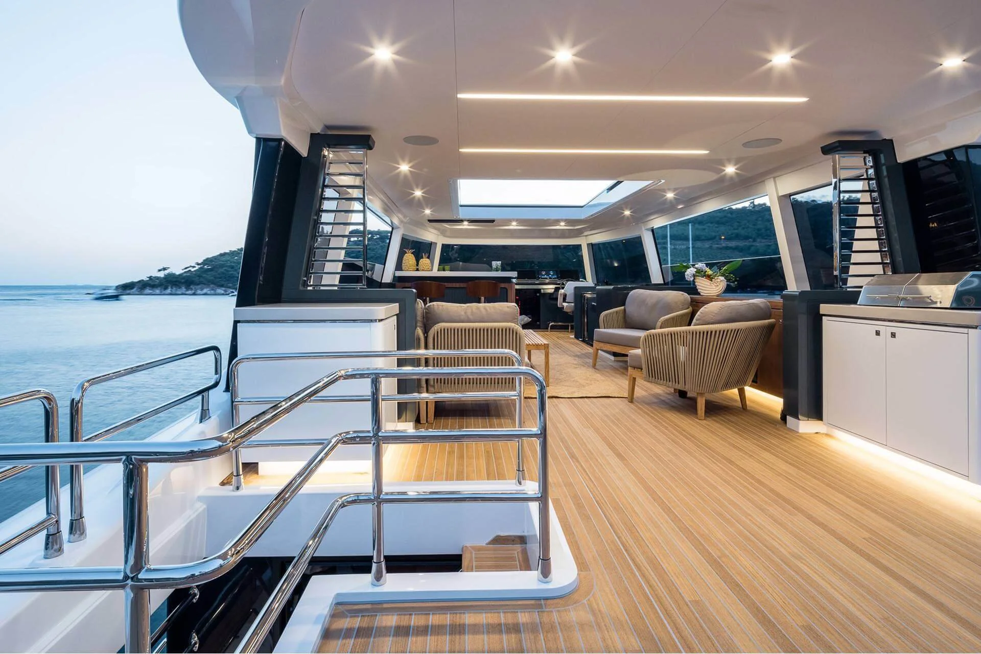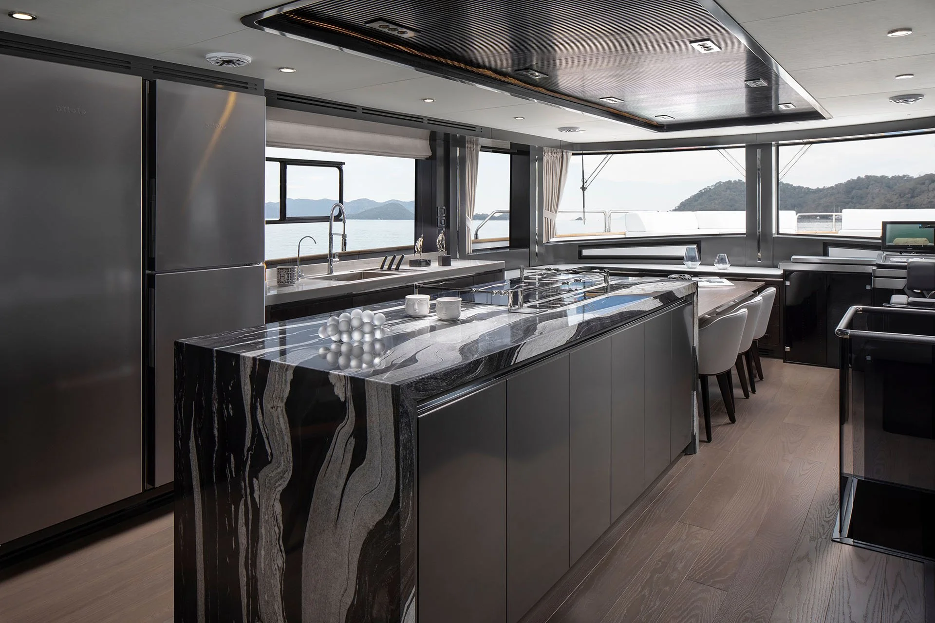 At Sirena Yachts, we consider how we use interior spaces, and eliminate all the ways they impinge on our comfort through good design. From large windows to lines of sight, it all works.