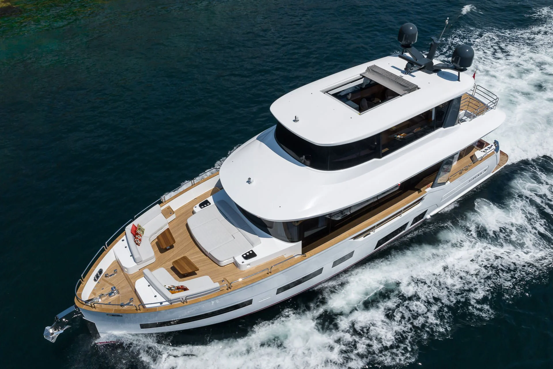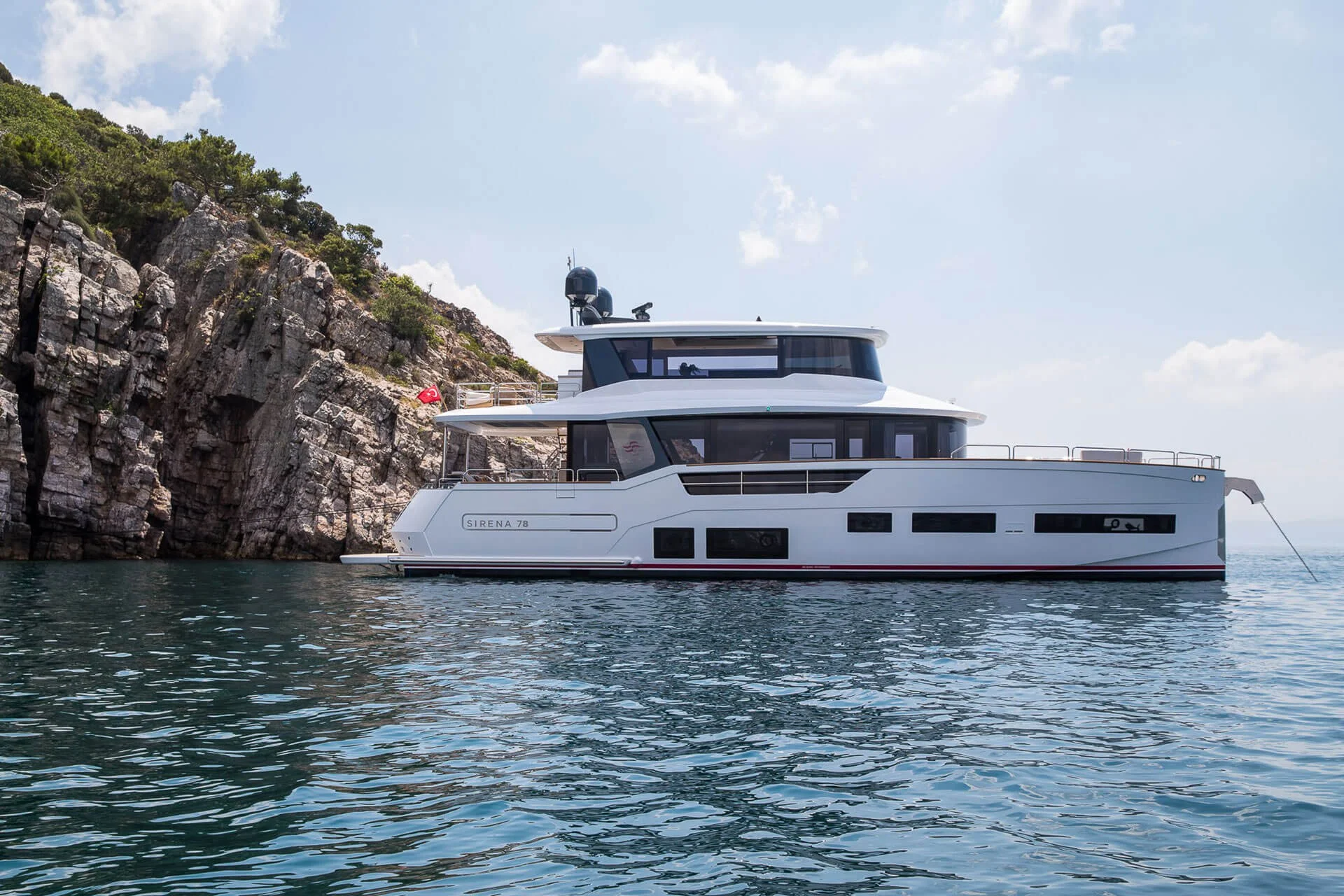 The Sirena 78 offers creative enhancements that signal an even more rapid evolution of design and innovation to improve the on-the-water experience. She effectively advances the idea of the cruising yacht by delivering a combination of interior comfort and a wide range of efficient performance. Her construction and finish meet at the intersection of advanced technology and craftsmanship,