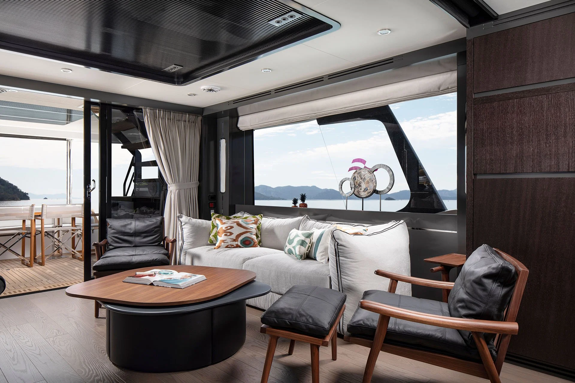 While this enclosure adds to the already impressive interior space on the yacht, there are several details that really set it apart, including large windows that open.