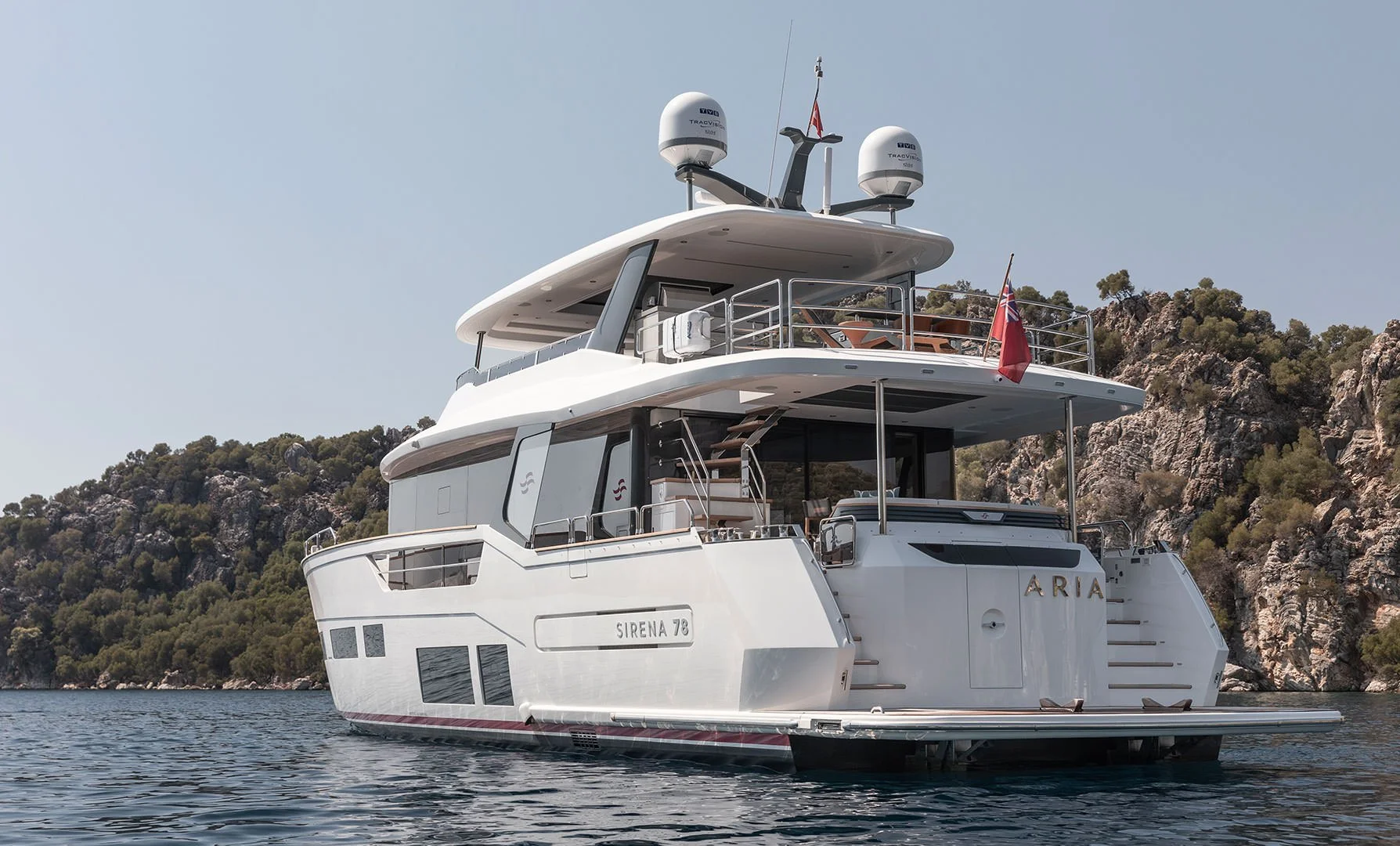 just as they did for her stablemates in the Sirena line, and yet the Sirena 78 takes next-generation thinking into every curve and corner of her design. It starts with the design, which boasts several options for the flybridge, a feature that has evolved as a hallmark element of the line. The flybridge is a key element on nearly all Sirenas, thanks to the space and views it makes available, as well as the overhang that provides delightful shade for the afterdeck.